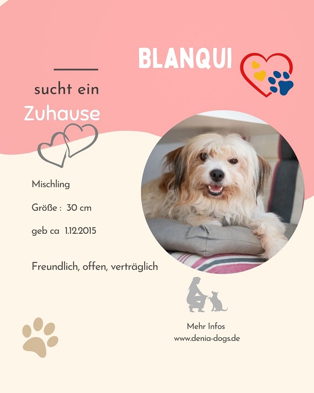 Blanqui ist ein wahres Schätzchen und würde sich über ein schönes Zuhause mit viel Liebe und Geborgenheit freuen. Meldet Euch gerne bei ihrer Vermittlerin