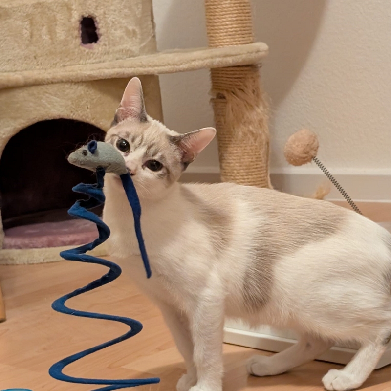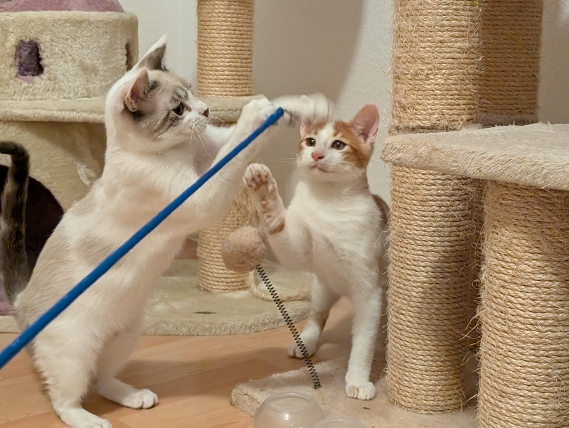 Bombon ist ein zugänglicher, fröhlicher Katzenjunge, der keine Scheu vor Menschen zeigt. Er kommt sofort auf einen zu, schnurrt gern und liebt es, gekuschelt zu werden. Mit seinen Geschwistern spielt er gerne, ist dabei aufgeweckt und neugierig.