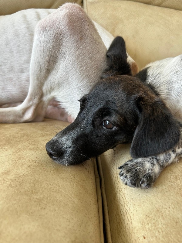 Gemeinsam mit meinen Hundefreunden renne ich gern durch den Auslauf: Rennen, Schnüffeln, Erkunden, Schmusen, Schlummern und Fressen – das ist meine Welt. Kommen Menschen in mein Sichtfeld sprinte ich sofort los und lasse mich knuddeln