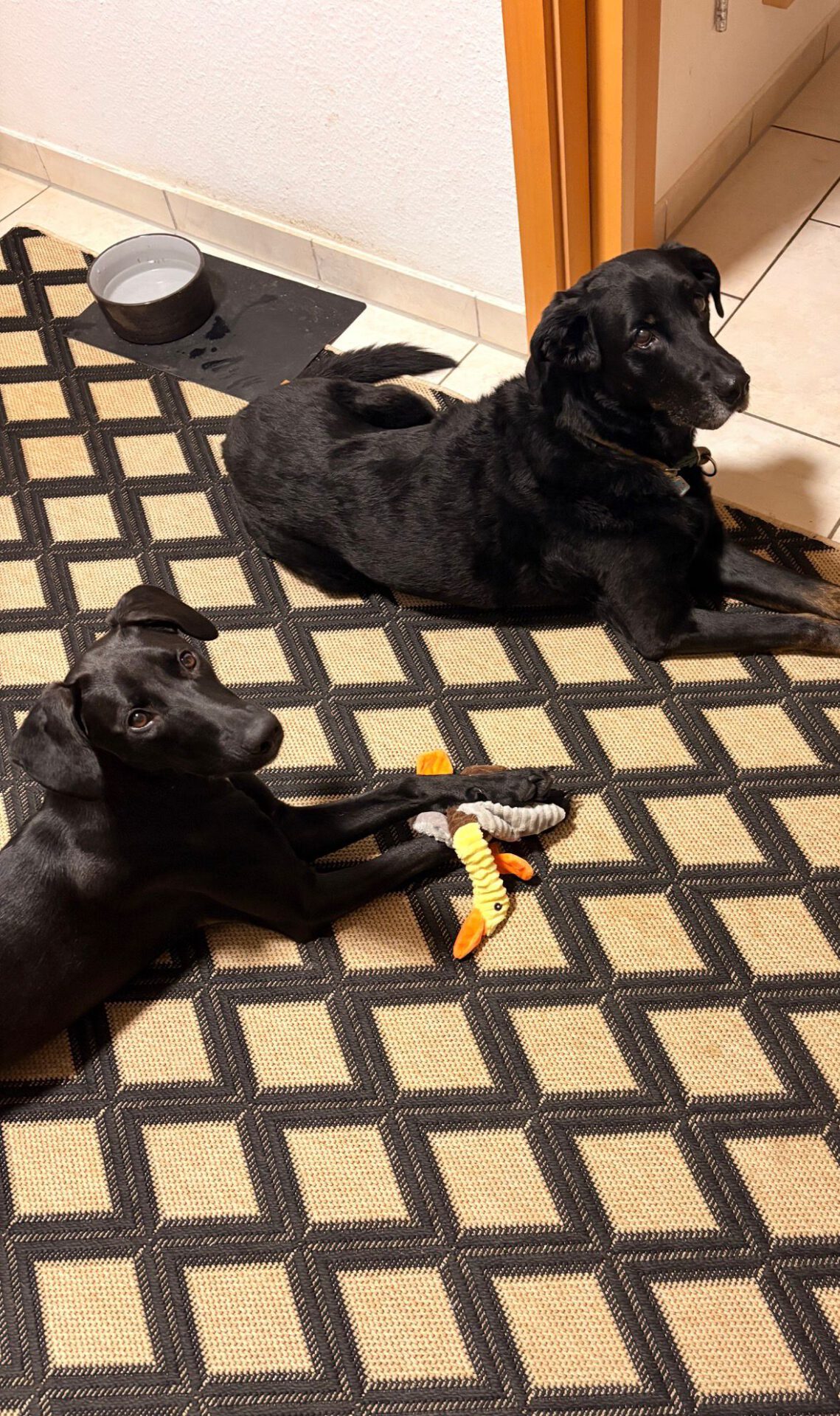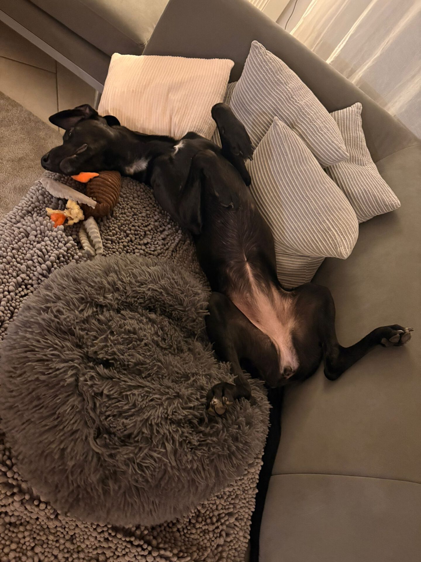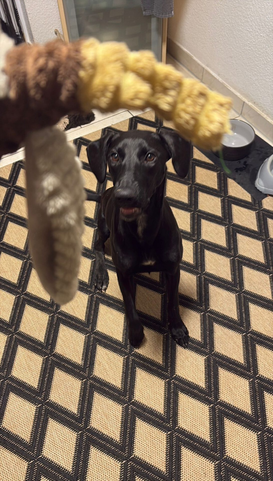 Lyanna kam mit ihren 6 Geschwisterchen in unsere Auffangstation. Die haben alle schon ein Zuhause gefunden, aber, für uns unverständlich, unsere süße Lyanna noch nicht. Der Mythos des großen, schwarzen Hundes? Finden wir auf gar keinen Fall, denn sie ist ein schwarzer Schatz – eine freundliche und aufgeschlossene Maus. Lyanna ist neugierig und interessiert. Bei Neuem und Unbekanntem ist sie zunächst vorsichtig, aber nicht ängstlich. Ansonsten ist sie schon viel selbstbewusster geworden. An der Leine laufen funktioniert schon sehr gut und Geschirr samt Mantel anziehen macht sie völlig problemlos mit. Wenn Gassigehen angesagt ist, steht sie in erster Reihe, gemeinsam mit Ihren 2 Mitbewohnerhündinnen, und freut sich darauf. Sie ist bewegungsfreudig und wäre z.B. sicherlich eine gute Joggingpartnerin. Bei Hundebegegnungen ist Lyanna durchweg freundlich, zu Katzenbegegnungen können wir noch nichts sagen. Sie war schon in der Hundeschule und ist dort eine Musterschülerin: Sitz und Platz kann sie schon und z.Zt. wird der Rückruf trainiert. Im Haus kommt die Süße gut zur Ruhe, ist schon an eine Hundebox gewöhnt und kann auch kurze Zeit alleine bleiben. Sie schläft nachts durch, ist stubenrein und meldet sich, wenn sie raus muss. Außerdem ist sie ein absoluter Kuschelhund. Allerdings verwechselt sie Schuhe noch mit Kauartikeln und deshalb wäre es ratsam, alles, was in diese Kategorie fallen könnte, unerreichbar für die Zuckerschute zu sichern. Lyanna sollte natürlich noch weiterhin das ABC des „Hundebenimm-Knigges“ lernen und entsprechend ihres Temperamentes körperlich und geistig beschäftigt werden.