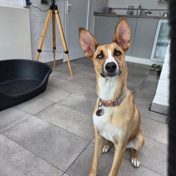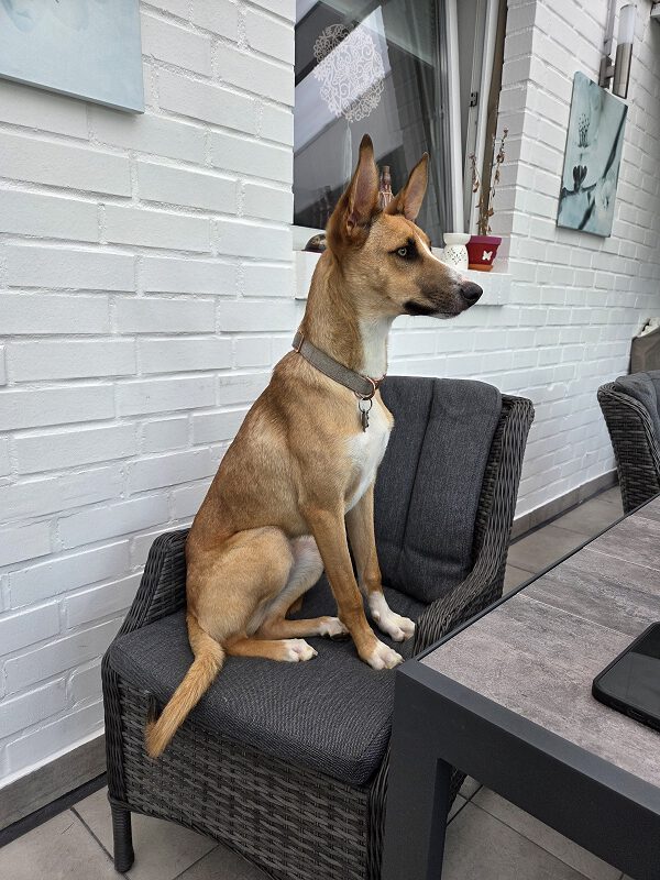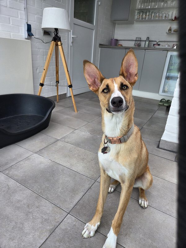 Melody kam direkt aus der Perrera in eine Auffangstation. Dort hatte sie das Glück von einer Familie entdeckt zu werden und adoptiert zu werden.