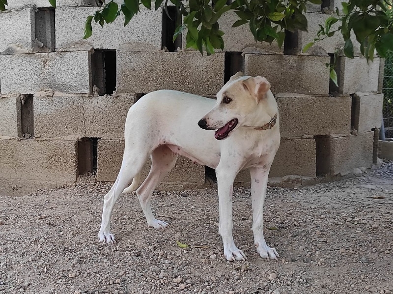 Sie kam vor einigen Monaten mit ihren Welpen in eine spanische Pflegefamilie. Ihre Welpen sind alle vermittelt, nur Naya wartet noch auf ihre Menschen. Anfangs war sie sehr ängstlich. Doch in ihrer Pflegefamilie blühte sie auf und verhielt sich wie ein normaler Hund. Sie zeigte sich freundlich, offen und ging gerne spazieren. Leider konnte sie dort nicht mehr länger bleiben und ist nun in einer kleinen Auffangstation.