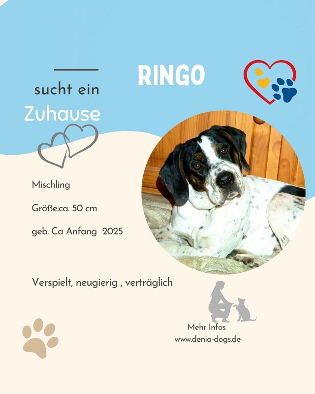 Für Ringo suchen wir Menschen, die Freude an einem jungen, verspielten Begleiter haben – jemanden, der Lust auf gemeinsame Abenteuer hat und ihm gleichzeitig liebevolle Führung und Sicherheit gibt. Ringo ist für jeden Spaß zu haben und wird mit Begeisterung alles lernen, was ein Familienhund wissen muss.