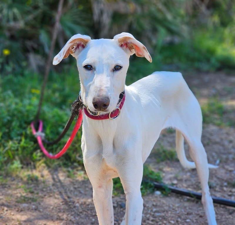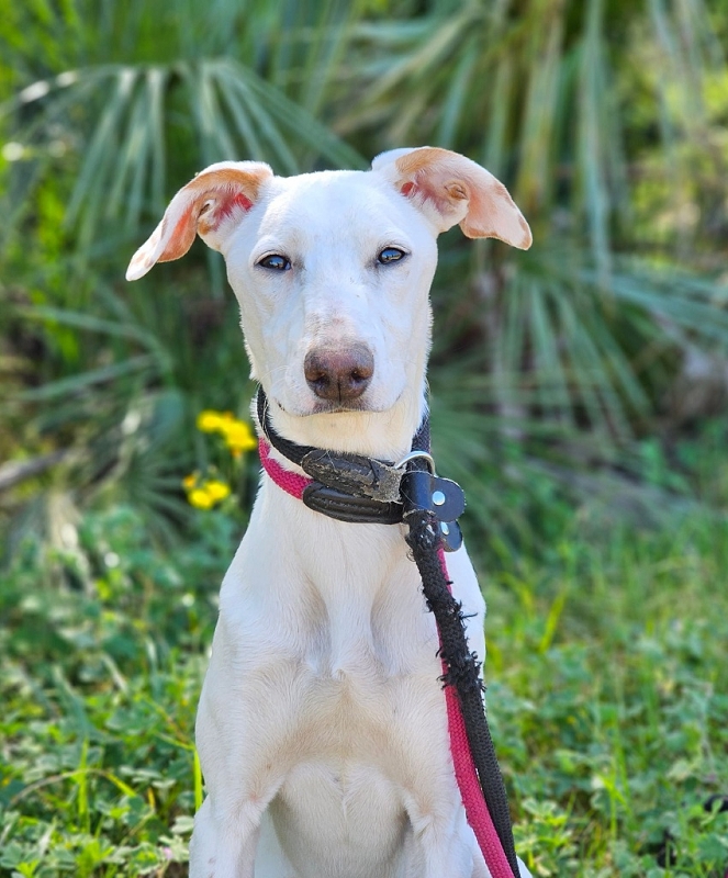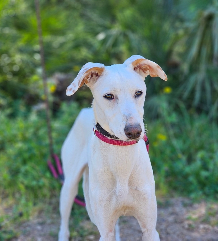 Stella ist eine kleine Schönheit – mit ihren süßen Wackelohren, dem hellen Fell und diesem charmanten Blick, der direkt ins Herz trifft. Wer könnte sich da nicht verlieben.