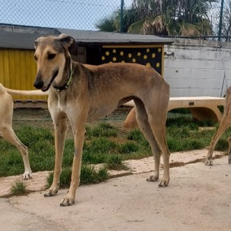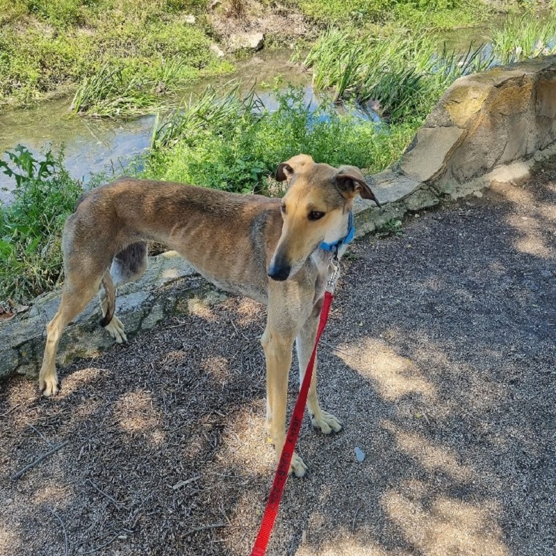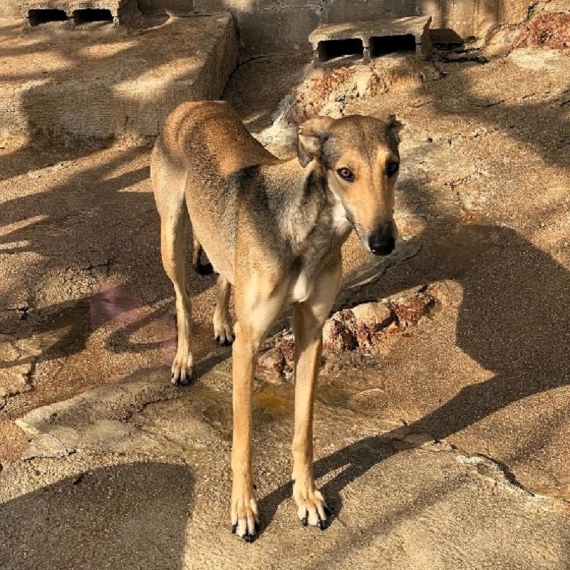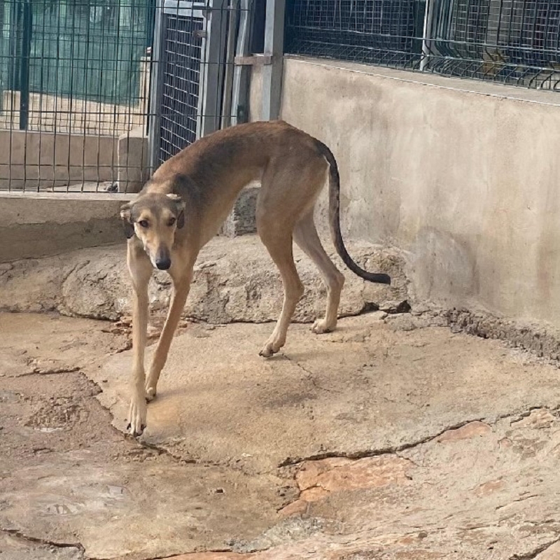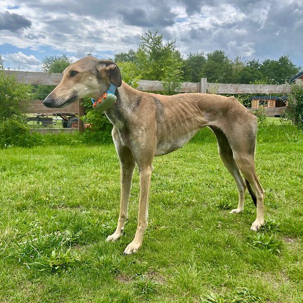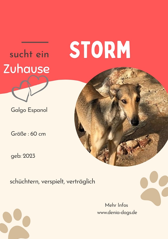 Storm ist eine sehr aparte junge Galgo Español Hündin, die aktuell in einem Tierheim lebt. Sie ist eine schüchterne, aber gleichzeitig temperamentvolle und verspielte Hündin, die Zeit braucht, um Vertrauen zu fassen – zeigt dann jedoch auch ihre lebensfrohe, neugierige Seite.