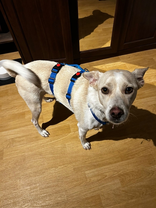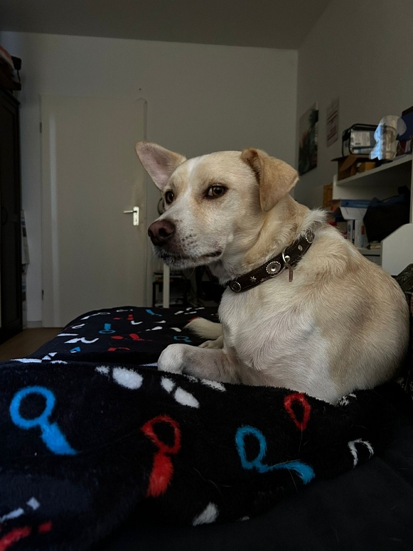 Freundlich, verspielt, verschmust — das ist Toby. Er macht so gut wie alles gerne mit, solange er einfach nur mit dabei sein darf. Egal ob wildes Spiel oder ein ganz entspannter Filmabend auf dem Sofa, Toby ist dafür zu begeistern. Gemütlich in seinem Bett liegen, während man Home Office macht? Check. Lange Spaziergänge, bei denen er super an der Leine läuft? Check. Kurz mit ins volle Einkaufszentrum, um ein Buch aus der Buchhandlung abzuholen? Check. Alleine bleiben? Nicht sein liebster Zeitvertreib, aber auch Check. Mehrere Stunden entspannt im Auto mitfahren? Auch Check. So einen entspannten Beifahrer hat man selten. Sogar sein Gemüse (Möhren) frisst er gerne.