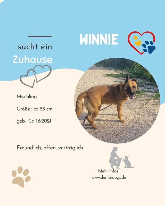 Winnie ist ein freundlicher Rüde im allerbesten Alter, der im Tierheim auf seine Menschen wartet. Offen, menschenbezogen und immer freundlich – so präsentiert sich Winnie hier. Menschen liegen ihm sehr am Herzen, und auch mit seinen Hundekameraden kommt er gut zurecht. Winnie liebt Spaziergänge und geht bereits gut an der Leine.
